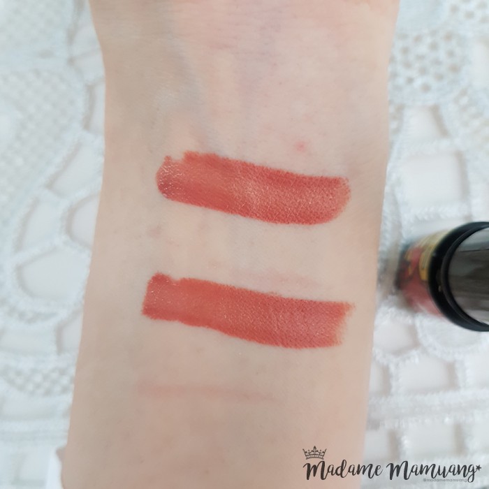 ส่วนลิปนี่เป็นอะไรที่ปลื้มมาก เนื้อดี สีสวย ทาง่ายแบบปาดทีเดียวติด ไม่ตกร่อง และ (จนตอนนี้) ก็ยังไม่เป็นคราบ แถมชุ่มชื้นด้วย