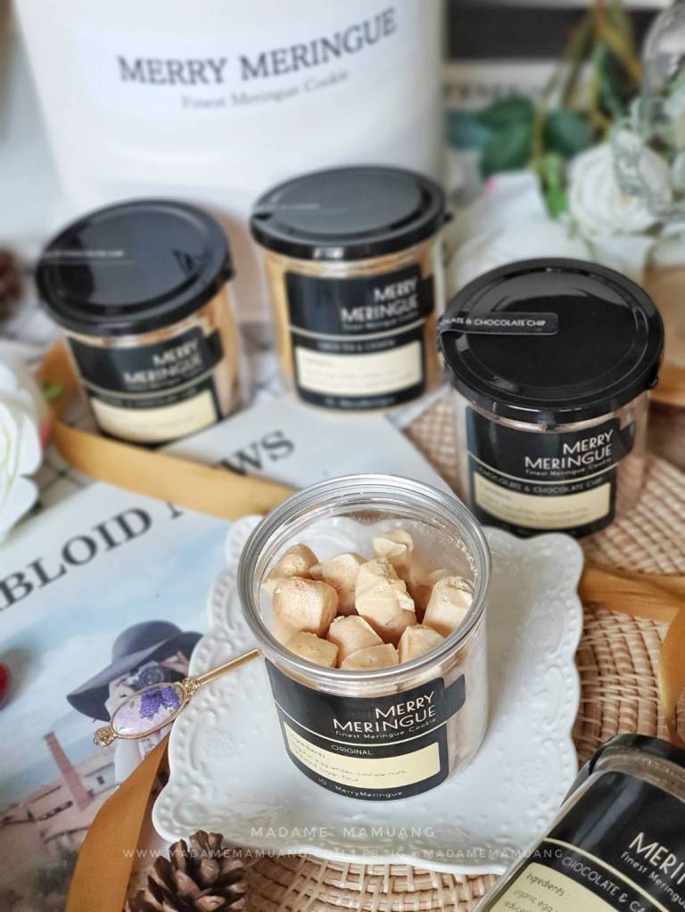 Merry Meringue (เมอ-รี่-เมอ-แรงค์) เมอแรงค์ คุ้กกี้สไตล์สวิสเซอร์แลนด์ (Swiss Meringue) ที่คัดวัตถุดิบที่ดี มีคุณภาพ และพิถีพิถันในการผลิตทุกขั้นตอน เมอแรงค์ของเราจึงกรอบอร่อย ลงตัว เนื้อสัมผัสไม่เละ ไม่เหมือนเมอแรงค์ทั่วไป และที่สำคัญใช้นำ้ตาลน้อยกว่าถึง 70%