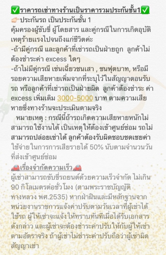 3. ประกันรถครอบคลุมมั้ย / ประกันมีค่า excess มั้ย / ในกรณีรถเสียระหว่างทางจากสภาพรถจะมีการดูแลเราอย่างไร / หากเราทำรถเค้าเสียหายจะมีค่าปรับอย่างไร ลองอ่านให้ดีๆ ก่อนน้าา…