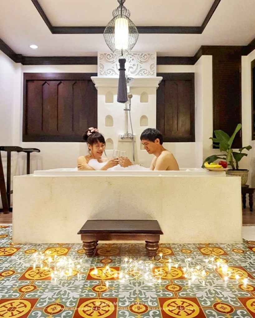 เห็นอ่างน้ำแบบนี้ก็จัดการลงแช่สิคะไม่มีพลาด ได้รีแลกซ์กันสักหน่อยจากที่ไปเบียดผู้คนและโดนแดดจ้าตามจุดเช็คอินต่างๆ แล้วมาลงอ่างพร้อมจิบน้ำแร่แบบนี้คือดีงามมากๆ