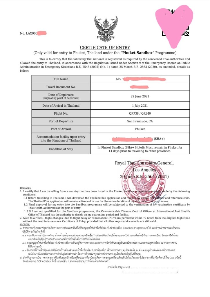 *Noted – As of July 1, you must land directly to Phuket (HKT). You can do transit in other country, for our case, we fly from SFO with Qatar, transit via Doha and then Phuket. Transit via Suvannabhumi is not allowed at this point but I heard they are planning about this for a while.