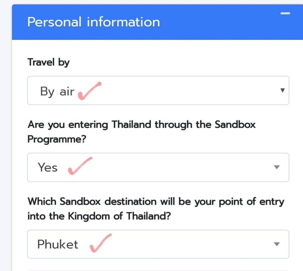 3. Important point is to Choose that you are flying by air, and joining Sandbox, and choose Phuket (Now only have Phuket, I believe more cities will be opened soon!)