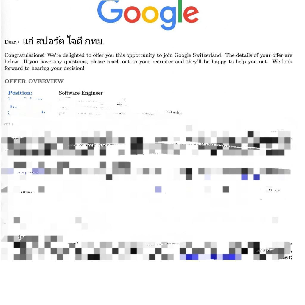วันนึง Google ก็เมล์มาบอกว่า โอเค นี่คือ Offer ของเค้านะ พร้อมให้ตัวเลขมา 1 ชุดถ้วน